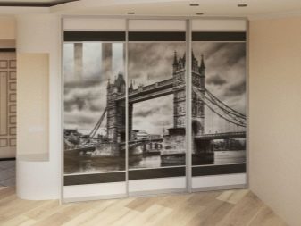 Les armoires avec un type de façades combinées sont magnifiques. Ils peuvent avoir des ceintures avec des inserts de différents matériaux avec différentes textures et couleurs. Leur corps peut être monochrome et les façades peuvent être décorées avec une impression photo.