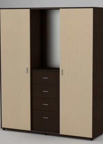 Les modèles d'armoires peuvent avoir des compartiments latéraux ouverts supplémentaires. Les conceptions modulaires sont souvent décorées de petits miroirs de formes diverses, d'étagères ouvertes, de socles au sol.