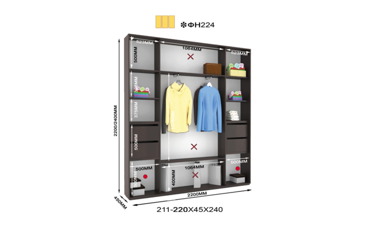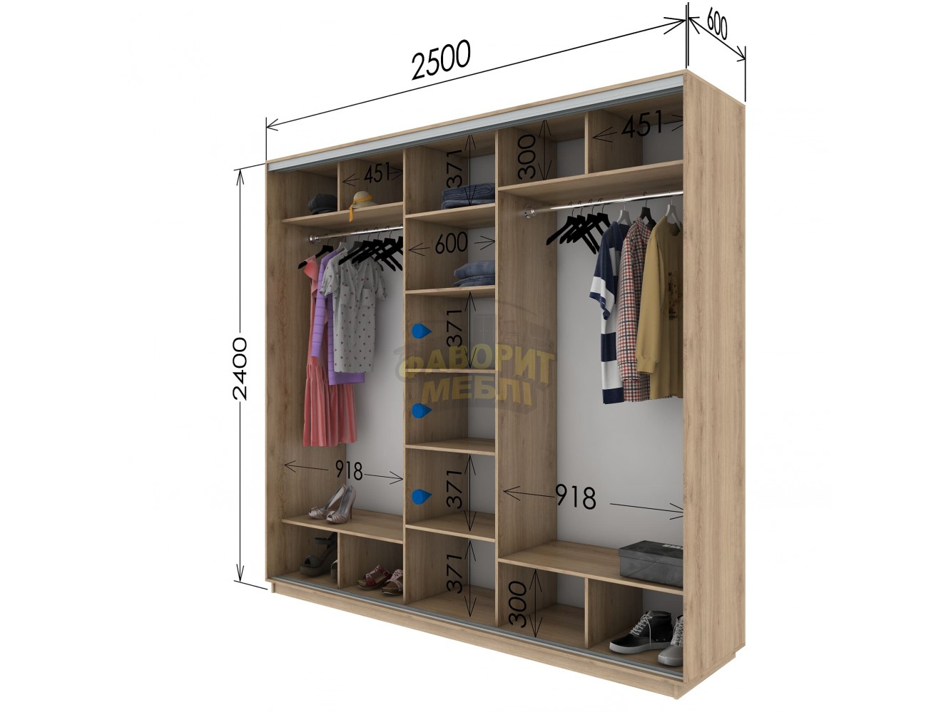 Le nombre de portes coulissantes dépend de la longueur du meuble. La largeur idéale d'une porte est jusqu'à 1 m.