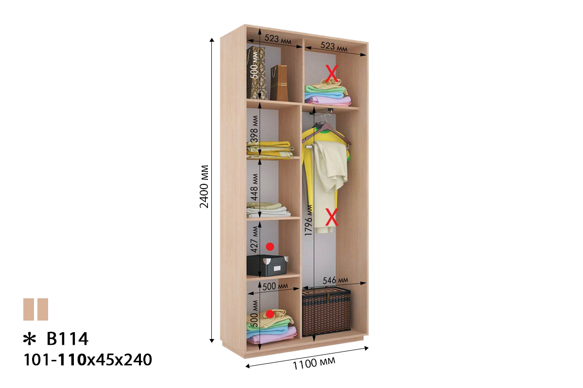 De plus, les produits peuvent être équipés de compartiments spéciaux pour ranger les vêtements de demi-saison et d'hiver, les pantalons, les cravates. C'est l'élément principal du contenu interne. Il peut être situé au centre ou sur un côté de l'armoire.