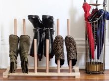 - Si vous préférez ranger vos chaussures à l'extérieur, la meilleure option pourrait être support avec chevilles caractéristiques... Leur utilisation est assez simple : ils mettent des chaussures sur les piquets. Ainsi, en cas de précipitations, les chaussures ne seront pas mouillées.
