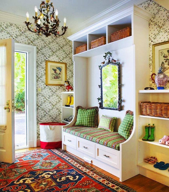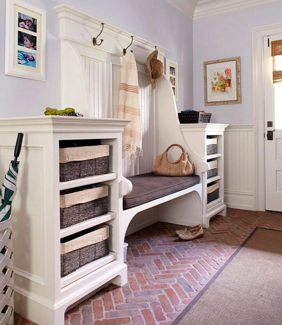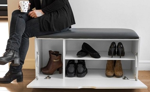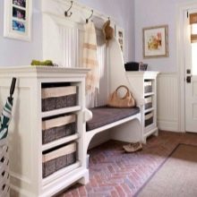 - Ceux qui ont des poufs ou des sièges dans le couloir peuvent aménager leur espace intérieur pour ranger les chaussures. Bien sûr, il est préférable d'y ranger des chaussons et des chaussures d'été. Pour plus de commodité, un séparateur peut être acheté ou fabriqué sur commande.