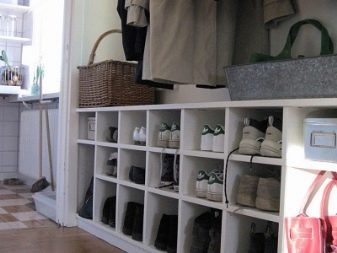 Il est préférable de diviser le système de stockage en zones appropriées pour chaque membre de la famille.... En termes simples, chaque membre de la famille devrait avoir sa propre étagère ou une partie de l'étagère qui ne stockera que ses chaussures. Si vous êtes prêt à supporter des coûts financiers supplémentaires, le système de stockage peut être équipé d'un chauffage et même d'une ventilation. Cela est particulièrement vrai pour ceux dont les chaussures sont constamment mouillées en raison de leur activité.