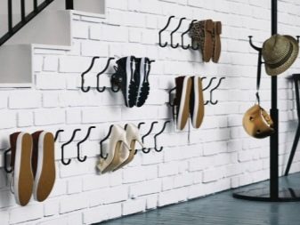 Dans un couloir catastrophiquement petit, vous pouvez ranger les chaussures directement sur le mur du placard ou simplement sur le mur. Les gros crochets sont la solution.... Ils peuvent être portés avec les orteils vers le bas et vice versa. Il est important de définir un nombre pair d'hameçons.