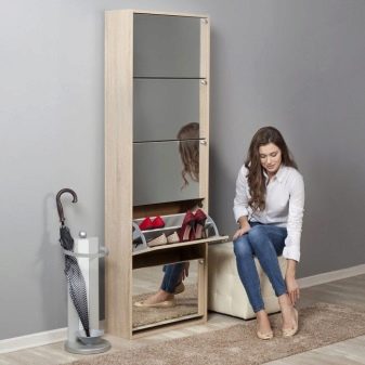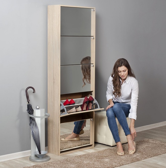 - Les armoires à chaussures doivent également être mentionnées. Ils ont des cavités spéciales pour les chaussures et sont équipés d'un système de tiroirs. Ils sont confortables et durables. Il existe de nombreux modèles dans une grande variété de tailles et de couleurs, ainsi que leurs matériaux de fabrication. Les plus populaires sont les armoires en bois. Récemment, il est devenu à la mode de ranger les chaussures dans des bibliothèques et des bibliothèques anciennes mais restaurées. Comme vous le savez, leur principale caractéristique est la présence de portes vitrées.