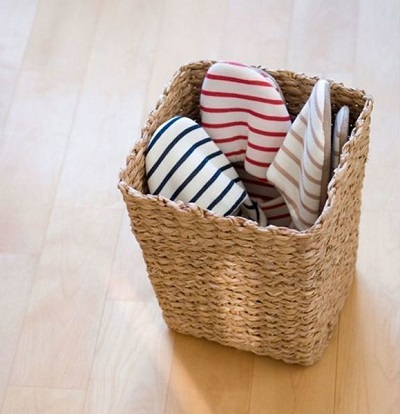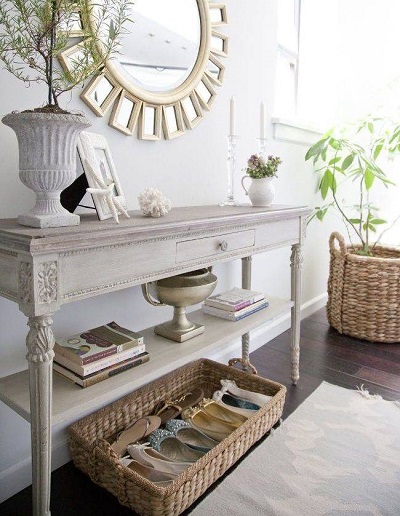 Vous pouvez utiliser un petit panier de vigne pour ranger vos chaussons. Cela ajoutera du confort au couloir et le stockage deviendra encore plus optimisé.