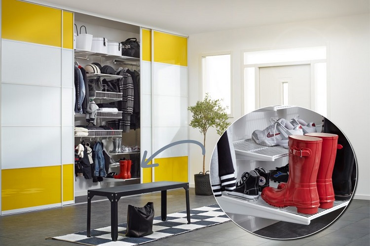 Les petites étagères classiques ne sont pas toujours une bonne solution et toutes ne peuvent pas s'intégrer dans la pièce. Comment ranger diverses chaussures de saison tout en économisant de l'espace, ainsi que compléter l'intérieur avec un détail élégant, lisez l'article ci-dessous.