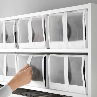 Gardez les chaussures hors saison propres... De plus, il doit être traité avec des composés protecteurs selon le matériau de fabrication. Ne pas ranger les produits humides pour le stockage. Cela affecte gravement leur sécurité, tout comme la saleté restante. La partie intérieure doit également être rappelée. Un spray antibactérien est idéal à cet égard. Seuls les éléments souples peuvent être stockés dans les organisateurs. Ce nombre comprend les sandales, baskets, chaussons, ballerines.