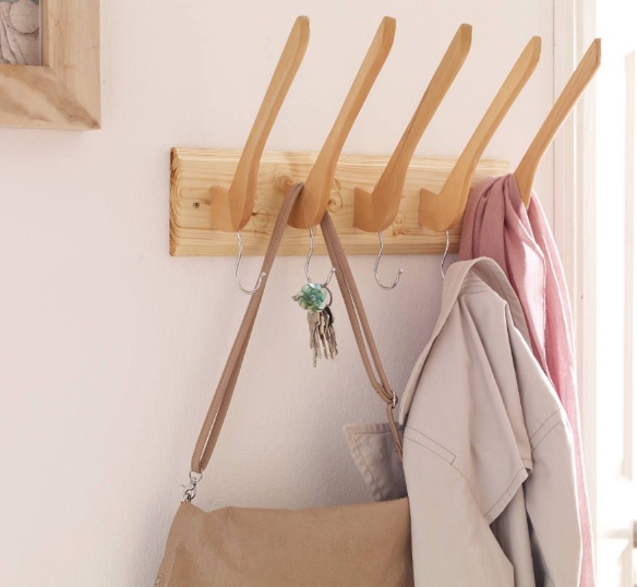- En bois. Les crochets en bois peuvent supporter des charges de poids importantes. Ils ont l'air élégant, mais ils ne s'intégreront pas dans tous les intérieurs.