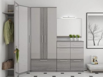 Pour les petits couloirs, la meilleure option serait une armoire à une ou deux portes, qui devrait être placée le long du mur. Pour de tels locaux, les options d'angle sont également pratiques, ce qui permet d'économiser de l'espace dans une large mesure, tout en restant certainement assez spacieux.