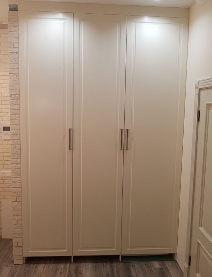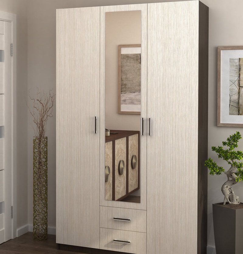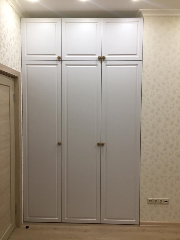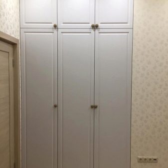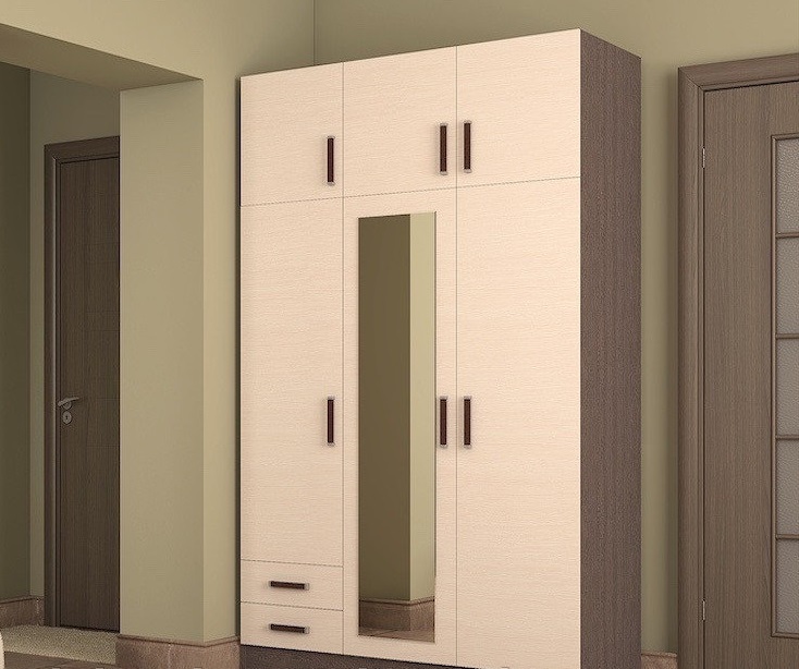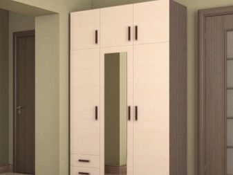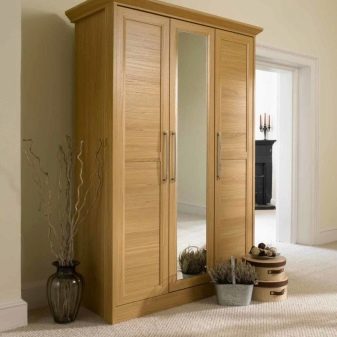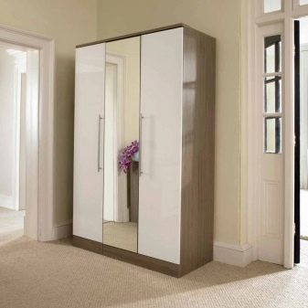 - Trois portes - caractérisé par la présence de compartiments spacieux pour y placer des vêtements (manteaux, imperméables, manteaux de fourrure, vestes, etc.). Ils sont souvent équipés de boîtes à chaussures. Une option typique est une armoire pivotante avec un miroir sur la porte.