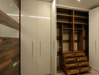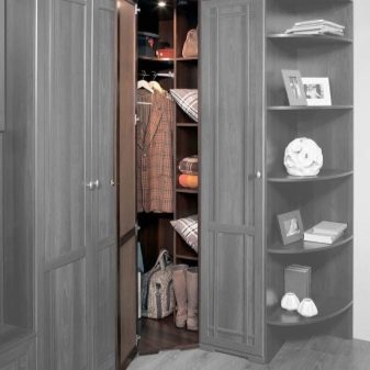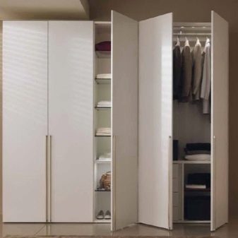 De nos jours, les armoires pivotantes sont présentées dans de nombreux modèles différents, qui ont absorbé les caractéristiques des tendances et du design de style moderne., dans lequel vous trouverez de nombreux éléments supplémentaires: miroirs, techniques d'éclairage inhabituelles, enceintes d'angle avec étagères, etc. Tout cela détermine la bonne fonctionnalité du produit, sa commodité et sa présentabilité globale.