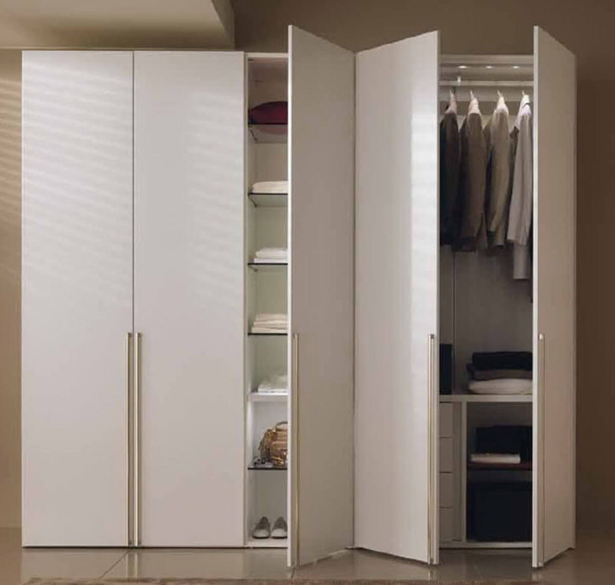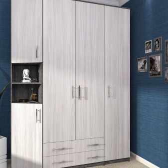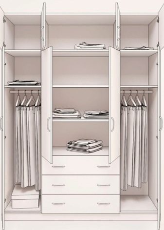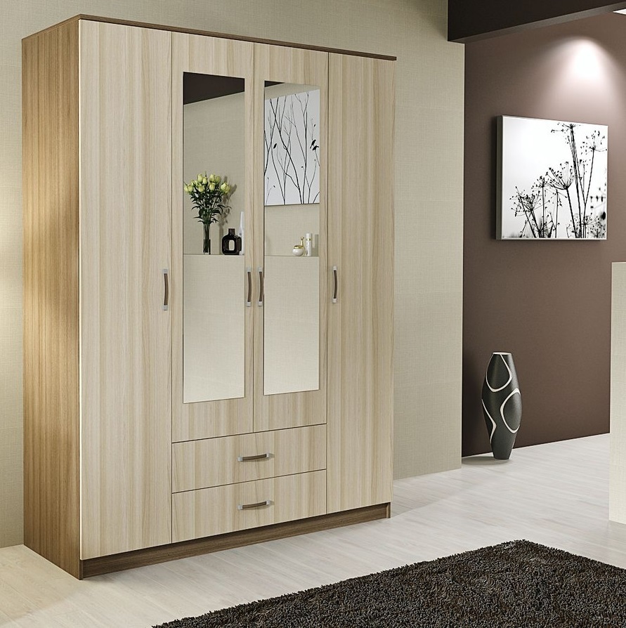 - Armoires à quatre portes - peut être produit assez encombrant. Néanmoins, certains modèles (avec des portes pas très larges) se révéleront assez élégants extérieurement.