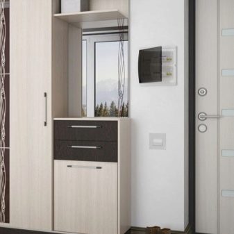 Corner - combinez deux aspects loin d'être inutiles: l'espace et l'économie spatiale. Ils sont utilisés pour les petits couloirs dans les petits appartements.