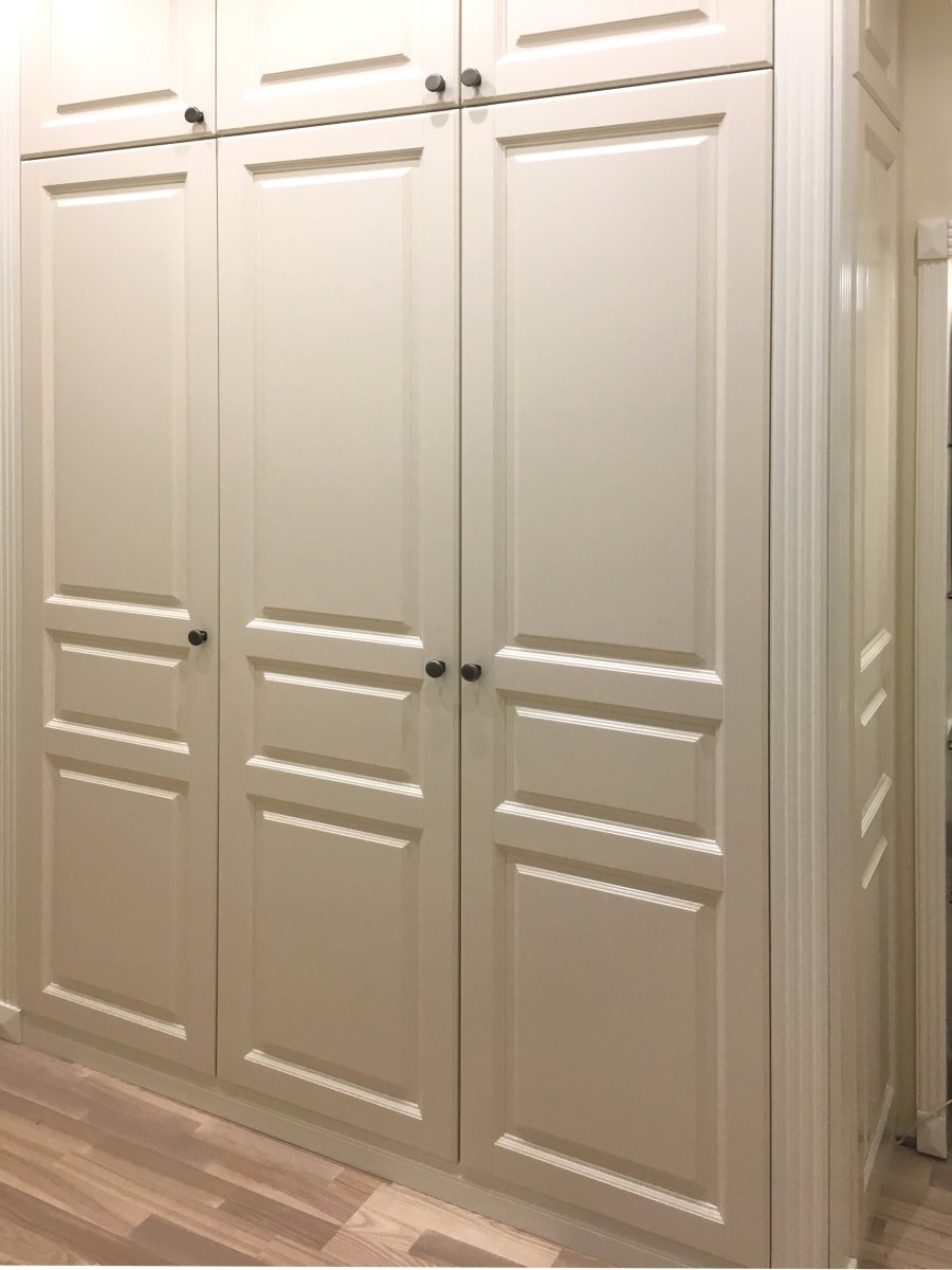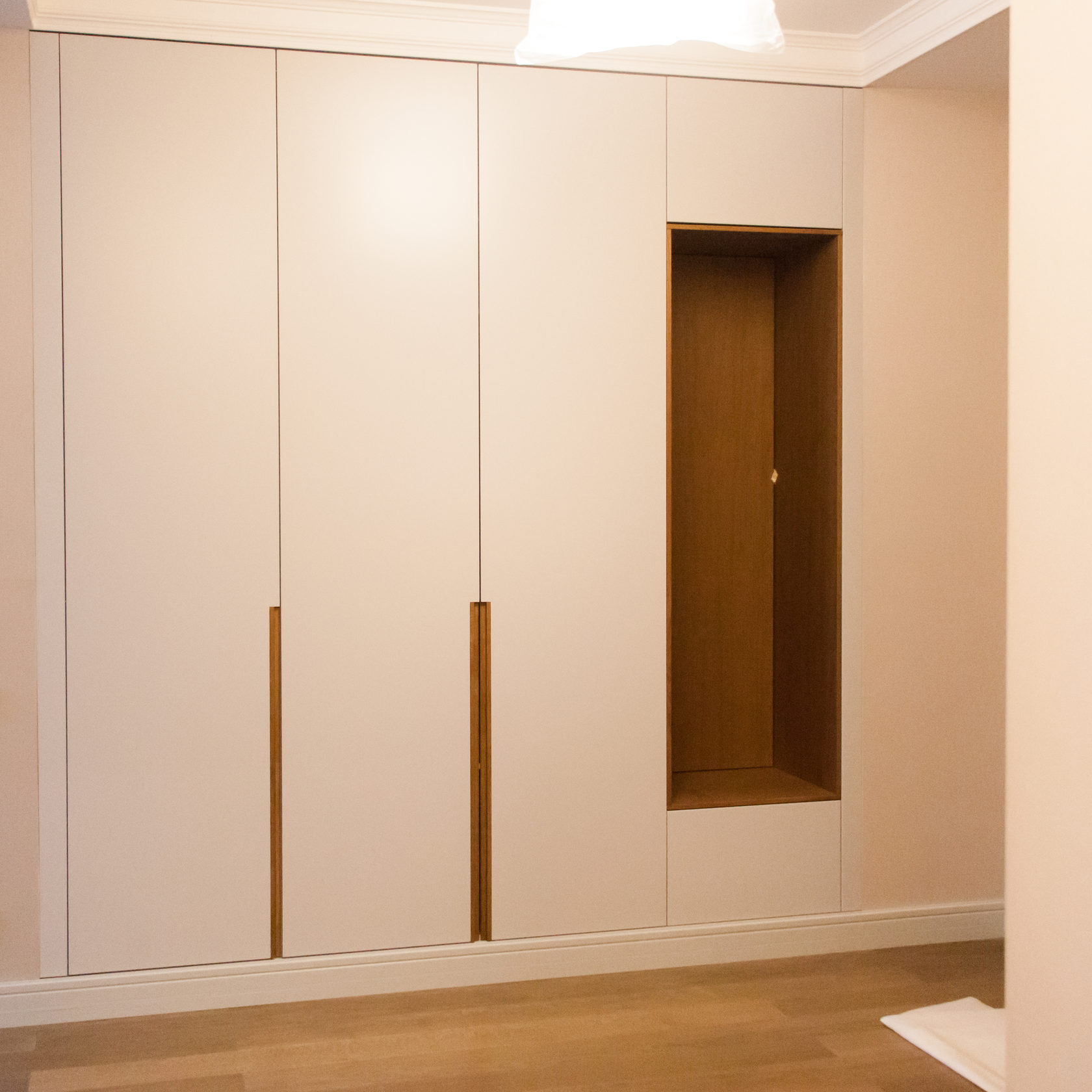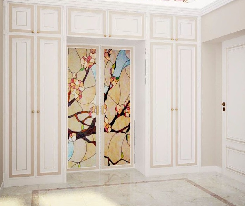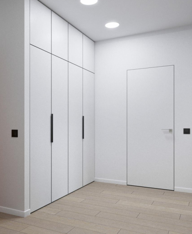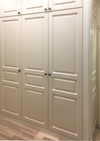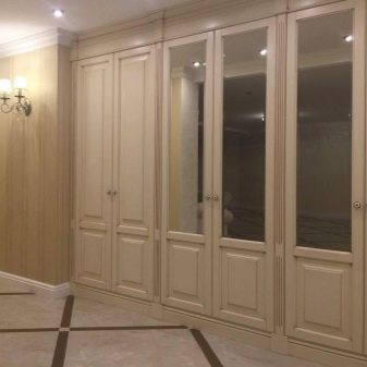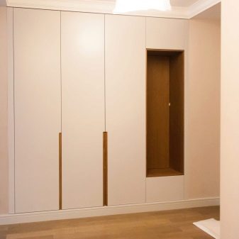 - Options intégrées suggérer un placement différent des armoires. Ils sont placés dans différentes parties des locaux, montés dans des niches. Souvent, ils occupent tout le mur (jusqu'au plafond).