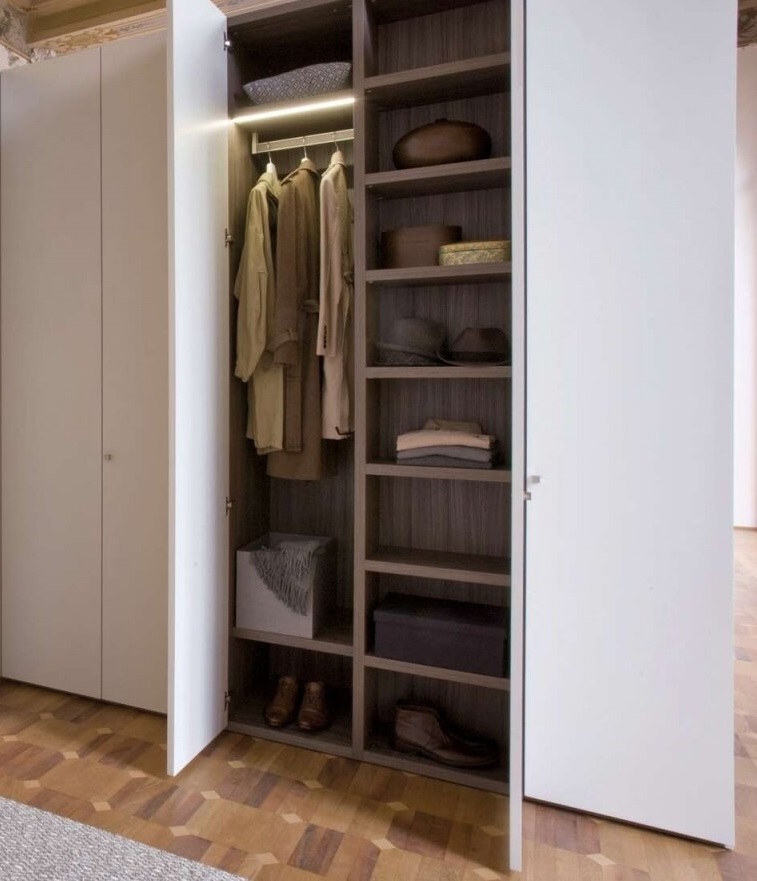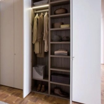 Parfois, vous rencontrez des armoires d'une profondeur maximale de 30 cm. De tels produits valent la peine d'être achetés pour les couloirs miniatures, car, en fait, il ne s'agit plus d'une unité séparée, mais d'une partie structurelle du placard - un compartiment pour les vêtements.