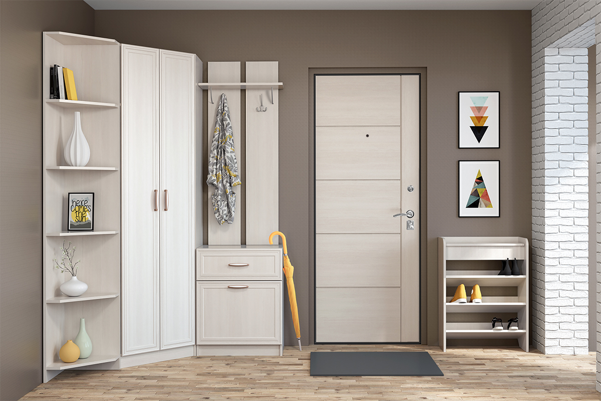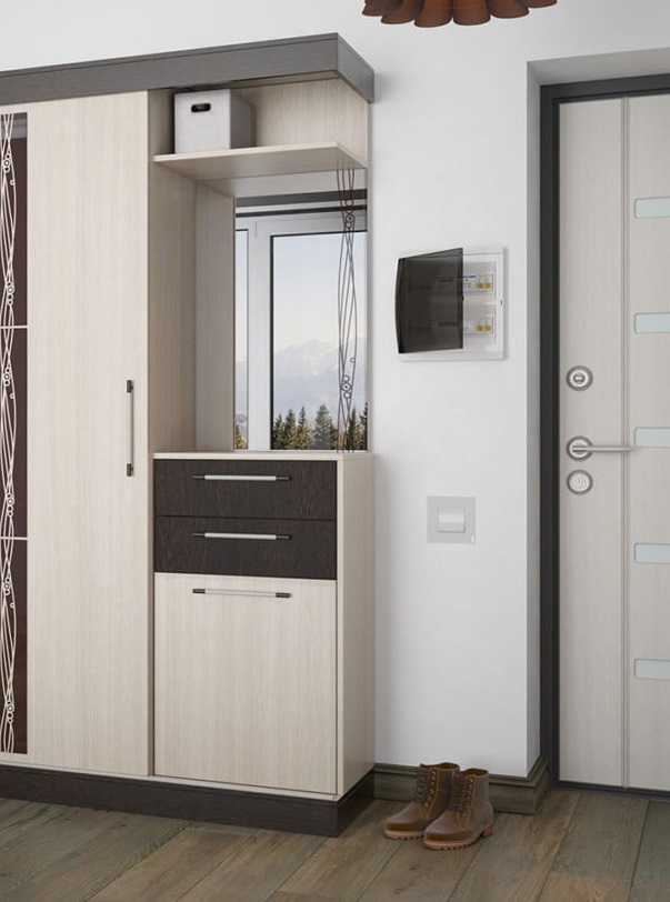 - Feuille simple - design compact, mais avec un bon contenu, qui peut être complété. Une bonne option pour un petit couloir.