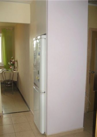 Si la cuisine est combinée avec le salon et que vous avez souvent des invités, le réfrigérateur est une source, bien que petite, mais bruyante. Pour les maisons de campagne 4x5 m, où la cuisine est combinée avec une chambre ou un bureau, placer un réfrigérateur dans le couloir est la seule issue. Peu importe à quel point les réfrigérateurs sont silencieux, ils ne font pas moins de bruit que l'unité intérieure d'un climatiseur split. Dans la cuisine-salon l'été, où le climatiseur fonctionne souvent, et où vous souhaitez vous détendre, le réfrigérateur vous empêche également de vous endormir.