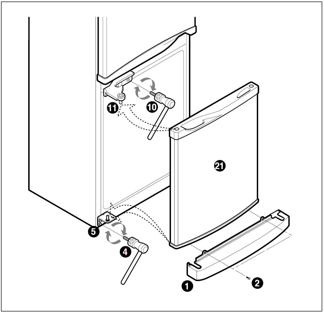 - Les mini-réfrigérateurs à une chambre sont intégrés dans les armoires ordinaires et à compartiments. Les étagères sont préalablement retirées du compartiment (le cas échéant). Une exception est les unités de congélation avec une porte qui s'ouvre par le haut.