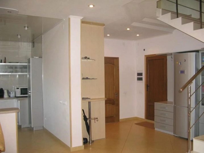 - A côté des escaliers au deuxième étage. Le couloir est généralement assez grand dans les cottages à deux étages. Malgré la taille décente de la cuisine-salon (ou de la cuisine-salle à manger), un certain nombre de propriétaires retirent le réfrigérateur dans le couloir. A proximité, vous pouvez placer l'armoire d'origine, qui ne ressemble pas à un compartiment. Si une armoire est encore utilisée, le réfrigérateur est retiré dans l'un de ses compartiments, après avoir retiré toutes les étagères de ce dernier, et l'armoire est personnalisable, pliable.