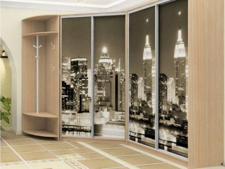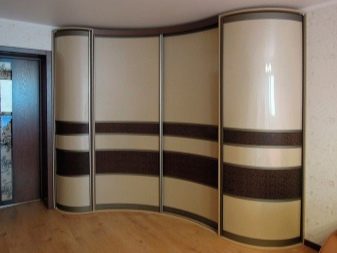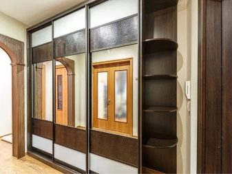 En plus de la forme rectangulaire, les armoires du couloir peuvent être angulaires, arrondies et les portes se déplacent non seulement en cercle, mais également en vague. Seule cette dernière option a souvent une profondeur de 60 cm.Mais la variété du design ne réside pas tant dans les formes que dans l'apparence des façades des modèles, mais elles sont déterminées par le matériau à partir duquel les vantaux de porte sont fabriqués.