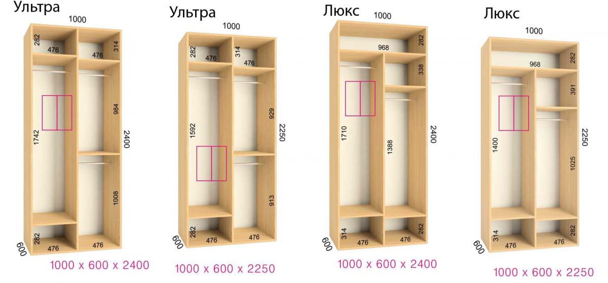 À l'époque soviétique, selon GOST 13025.11 1985, la norme de profondeur pour les armoires a été adoptée - 60 cm. À tous égards, cette taille était considérée comme la plus pratique. Même les manteaux de fourrure avaient suffisamment d'espace dans le placard sur des cintres. L'épaisseur des portes et du mur du fond était insignifiante, en réalité, la profondeur de la structure était de 56-57 cm.