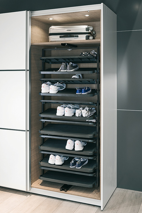 Il est préférable de ranger les chaussures dans des sections séparées dans des tiroirs en filet ou sur des étagères similaires. Cela lui donne la possibilité de ventiler et d'être clairement visible.