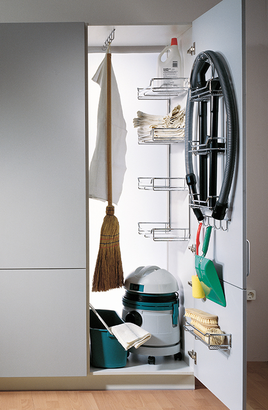 Les grandes armoires du couloir, en plus de leur fonction directe, servent à ranger des objets encombrants qui n'ont pas leur place dans les pièces à vivre. Un produit sur mesure peut fournir immédiatement un compartiment technique pour un aspirateur, des outils de plomberie, une table à repasser. Les équipements sportifs, chaises pliantes, valises et autres articles non standard sont stockés dans des armoires de ce type.