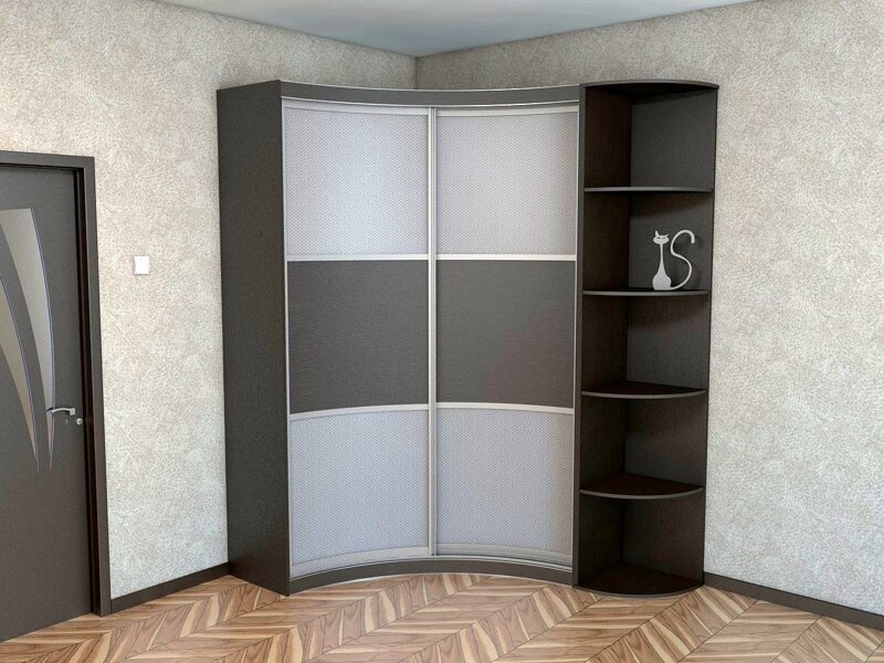 Partiellement intégré. La structure est située le long du mur, reposant sur un côté du coin. La paroi latérale et les portes manquantes sont en train d'être érigées pour elle. Le remplissage interne peut être fixé aux murs de la pièce et au mur latéral.