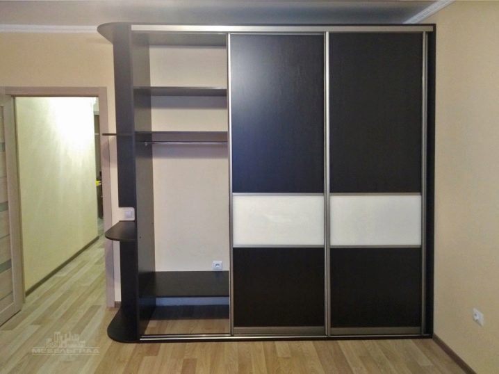 Intégré. Le meuble est construit dans une niche ou dans un espace mur à mur. Il ne nécessite pas ses propres murs, sol et plafond - des tiges et des étagères peuvent être fixées aux murs de la pièce.
