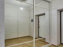 L'armoire intégrée est devenue le prolongement du mur et ne détourne pratiquement pas l'attention. Et les portes en miroir agrandissent visuellement l'espace, comme s'il y avait une autre pièce plus loin.