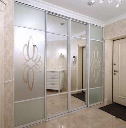 Les portes peuvent être complètement reflétées ou seulement l'une d'entre elles, par exemple, au milieu. Dans le même temps, il existe également de petits inserts décoratifs, ce qui exclut leur utilisation pratique.