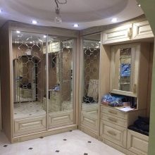 Les armoires avec miroirs ne sont pas mauvaises. En raison de cet ajout, l'espace augmente visuellement dans la pièce.