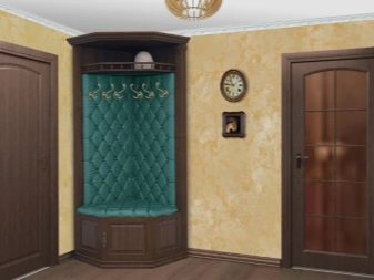 Récemment, les armoires triangulaires sont de plus en plus populaires. De tels meubles compacts peuvent être fournis avec une étagère à chaussures.