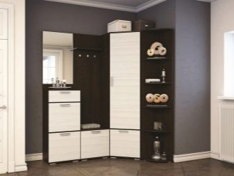 Le mini-couloir peut être ouvert ou fermé. L'armoire rectangulaire s'intègre parfaitement dans un type de pièce similaire. Les meubles d'angle allongés doivent de préférence être placés le long d'un long mur. C'est la version classique. Mais vous pouvez aller dans l'autre sens. Si le couloir est grand, le confort et le confort sont créés par l'emplacement de l'armoire d'angle avec le côté rectangulaire au bout.