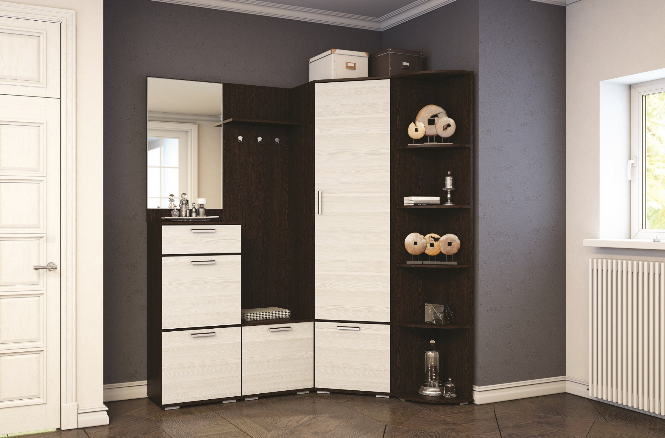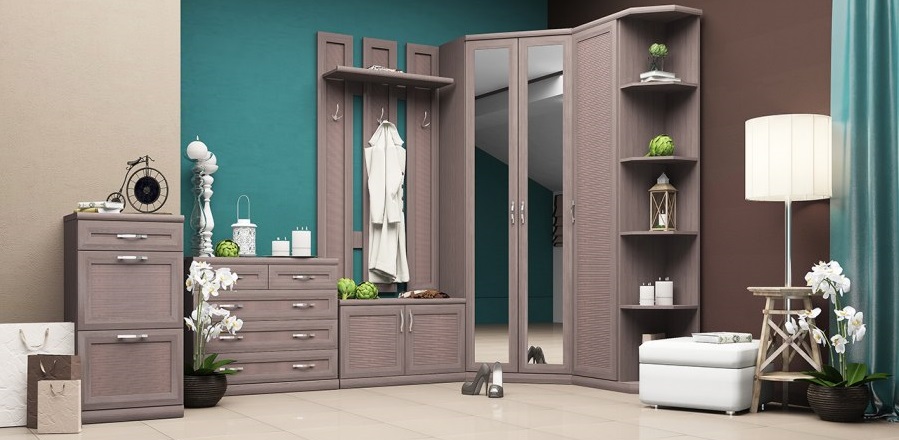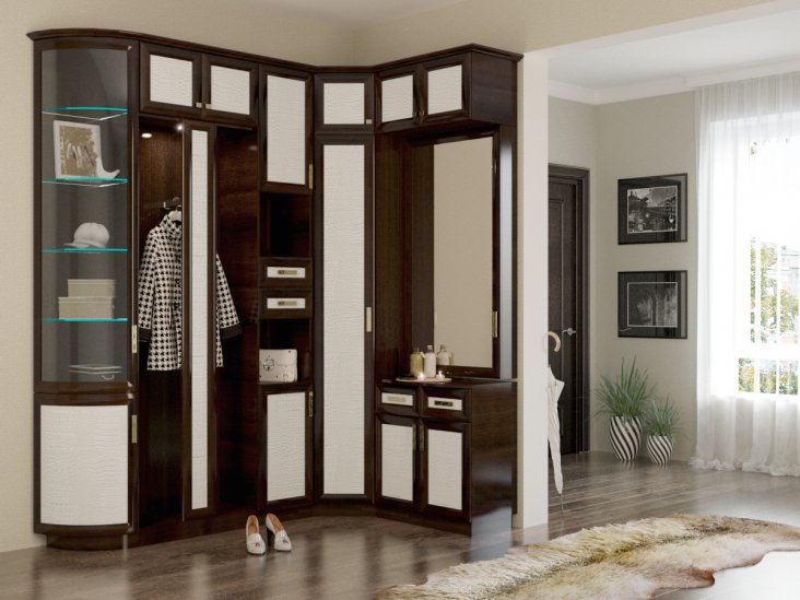 Parmi toutes, l'une des solutions les plus réussies sera achat d'un ensemble d'angle de type modulaire. Le principe le plus important à considérer lors de la construction d'un couloir étroit est de créer une largeur de passage suffisante. Il n'y a aucune raison de mettre beaucoup de choses ici pour la décoration, par exemple des vases, des supports.