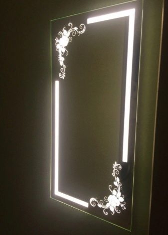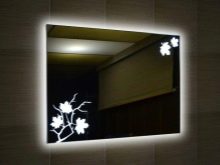 - Spot rétro-éclairage LED. Il est composé d'ampoules LED, à partir desquelles un certain motif est réalisé. Typiquement, une telle source lumineuse est montée à l'arrière du miroir. De nombreux utilisateurs décident d'éclairer le miroir de cette manière attrayante.