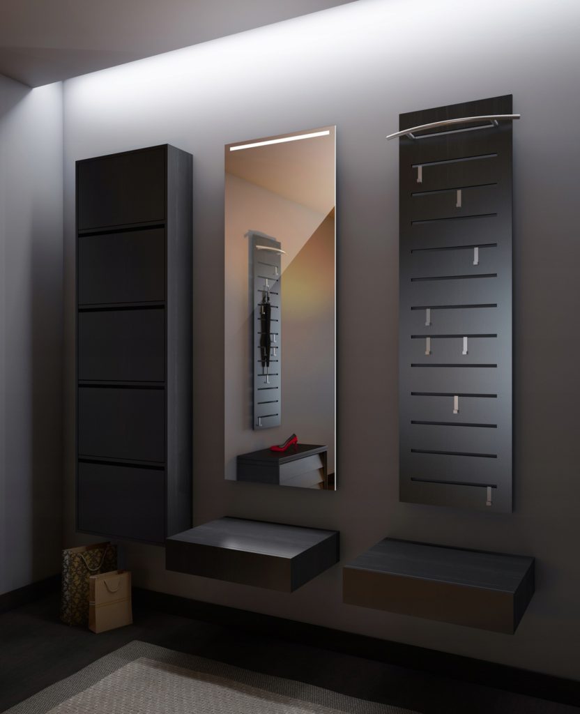 - Zones sûres pour l'installation - au-dessus d'une étagère à chaussures, d'une commode ou d'un banc.