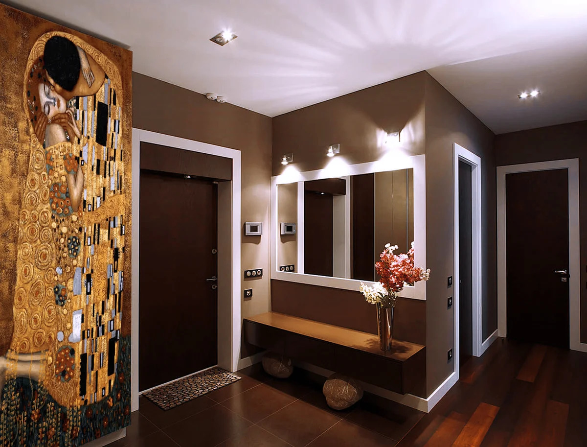 - Si possible, un accessoire lumineux peut complètement décorer l'un des murs du couloir.