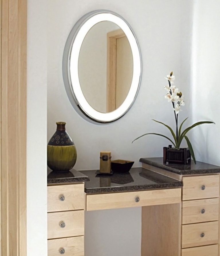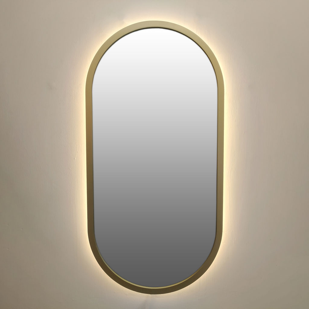 S'il est nécessaire de lisser les lignes, il est logique de se tourner vers les modèles ovales de miroirs éclairés. Ces variétés ont l'air très élégantes et stylées. Ils s'intègrent parfaitement aux intérieurs classiques, scandinaves ou Art déco. Les miroirs ovales peuvent être accrochés au mur ou posés au sol.