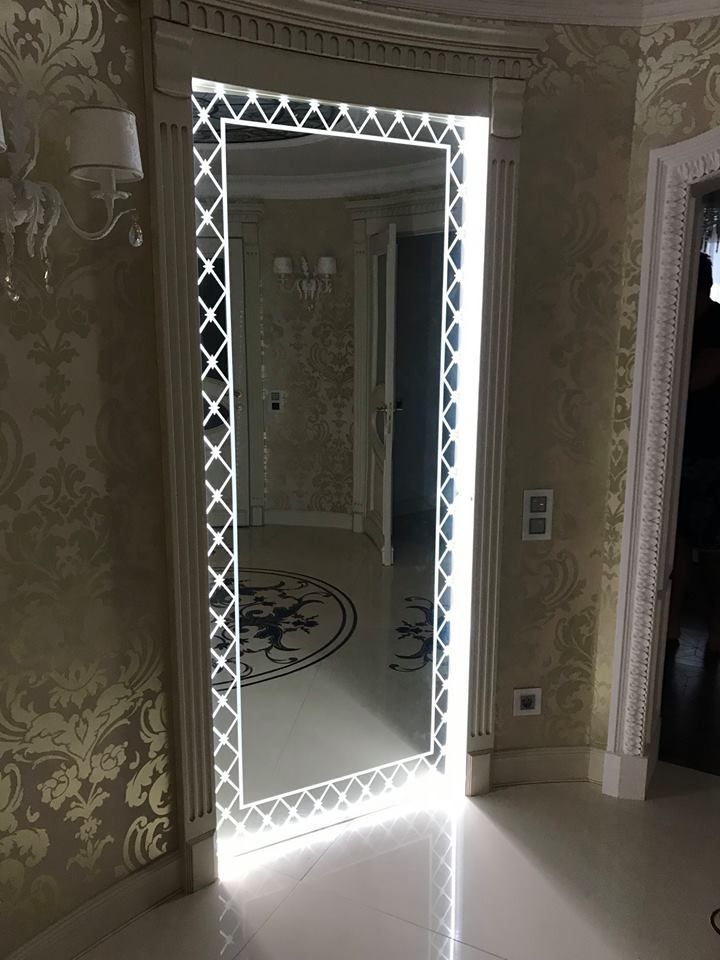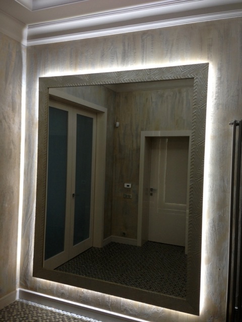 - Souvent, les miroirs éclairés sont complétés par de belles baguettes. Si un tel détail est installé dans le couloir, l'intérieur devient alors beaucoup plus présentable et luxueux.