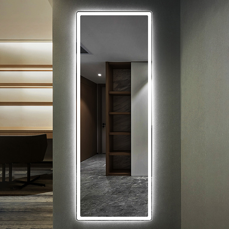 Les miroirs éclairés diffèrent également par leur forme. Les classiques sont des spécimens rectangulaires qui semblent laconiques et attrayants. De telles variétés vous permettent de structurer efficacement les lignes de la pièce, de former une sorte d'ordre géométrique. Les miroirs rectangulaires sont à la fois des miroirs muraux et de sol de différentes tailles.