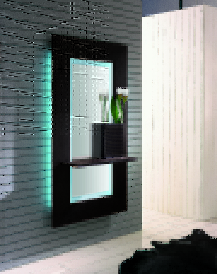 - Grâce au miroir éclairé, il est possible d'augmenter visuellement la surface du couloir. C'est pourquoi il est conseillé de sélectionner un tel composant pour un petit espace.