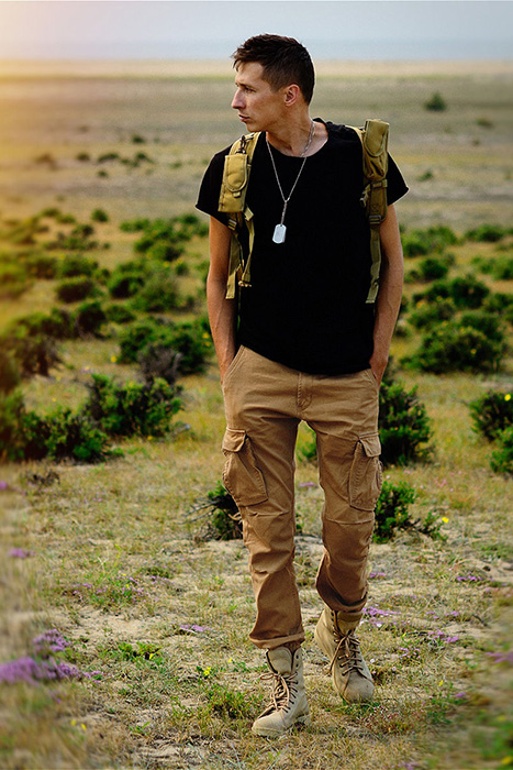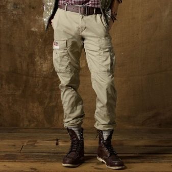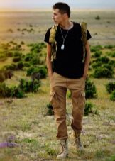Calças com corte militar ou cargo são usadas no verão com tênis ou botas estilo exército. Você pode complementar a imagem com a ajuda de moletons, camisetas justas, jumpers, camisas xadrez. É melhor manter o esquema de cores no mesmo estilo.