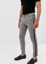 - Calças retas justas Adequado para jovens magros que seguem as tendências da moda. Eles podem ser usados com punhos ou com as pernas retas, complementados por slip-ons informais e botas de estilo esportivo. Esses modelos são ótimos para criar um look de verão informal em um estilo casual.