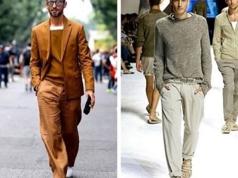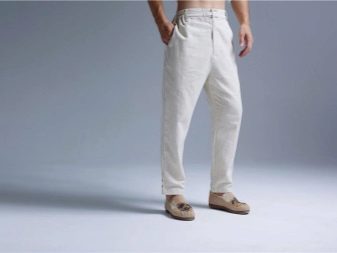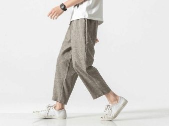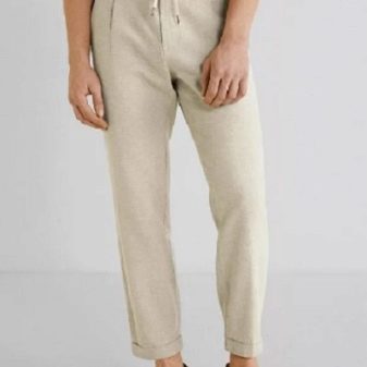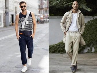 As calças de verão para homem são confeccionadas com tecidos de menor densidade, têm menos elasticidade e apenas fibras elásticas, fios mais naturais. Além disso, nos últimos anos tem havido o suficiente um grande número de modelos cortados que abrem o tornozelo... Vale a pena considerar que tal corte - tanto em uma versão estreita quanto em uma versão ampla - pressupõe uma figura um tanto esguia em um homem.