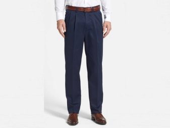 Para os homens baixos, preguear no cinto da calça permite obter um aumento adicional na altura, alonga visualmente a figura. Na versão de verão, as dobras vão dar ao algodão a falta de caimento, dar liberdade de movimento. Entre os modelos você encontra tanto soluções tradicionais na veia business, quanto modernas, com cortes, no espírito da moda de rua.