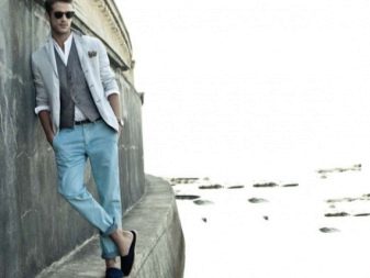 Ao escolher calças masculinas de verão, invariavelmente você tem que decidir o que vai vestir com isso. Se estivermos falando de um modelo para o escritório, o principal critério será o rigor do código de vestimenta. Por exemplo, com sapatos clássicos derby, "Oxford" apenas calças tradicionais com pintucks na frente e um corte bastante solto nas pernas vão bem... Eles são combinados com camisas clássicas, coletes, jaquetas.