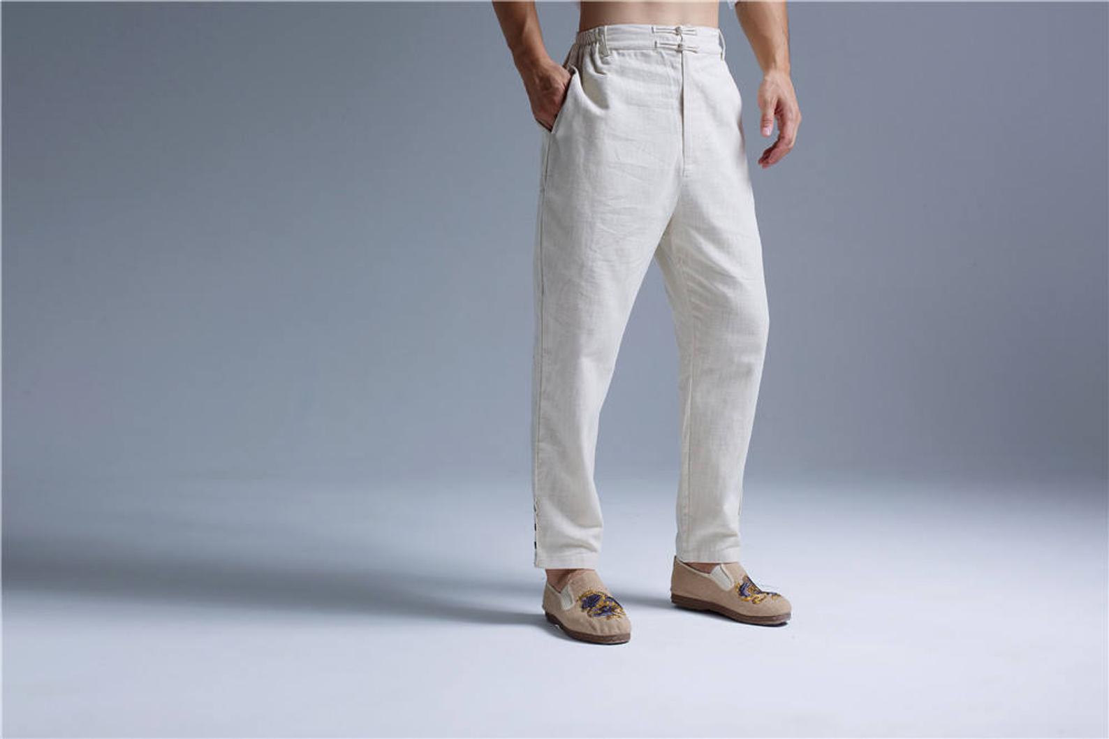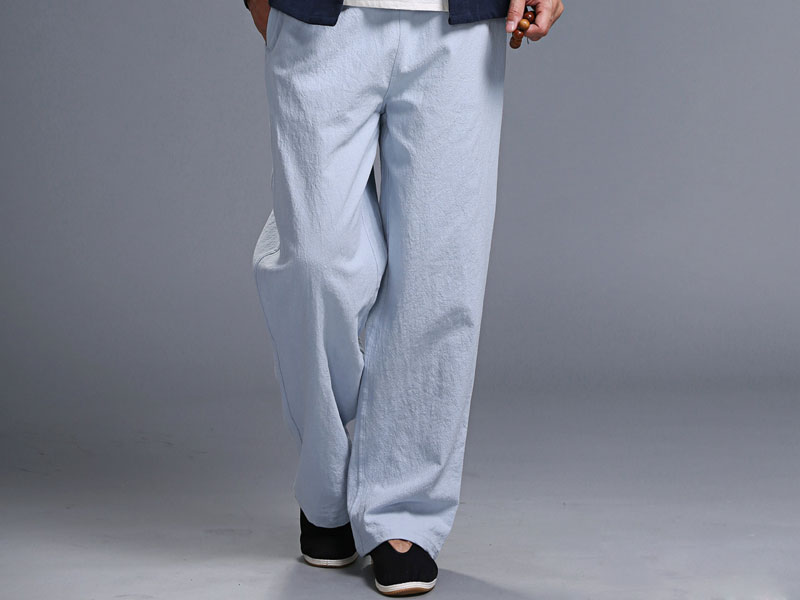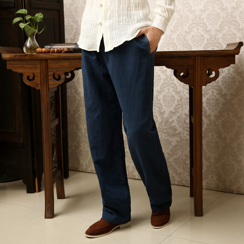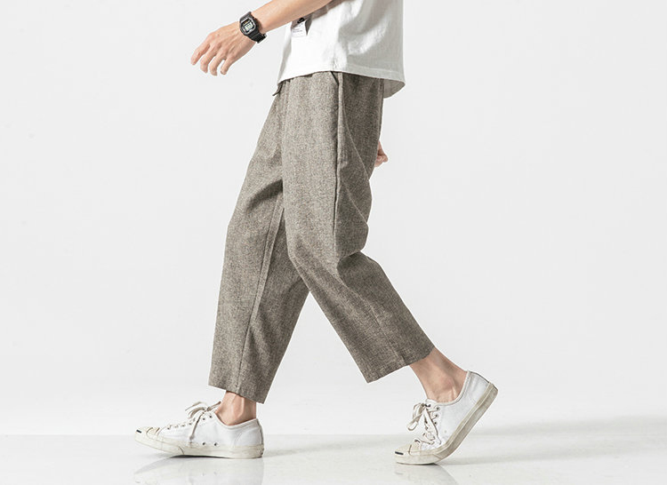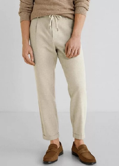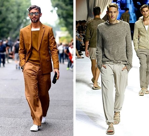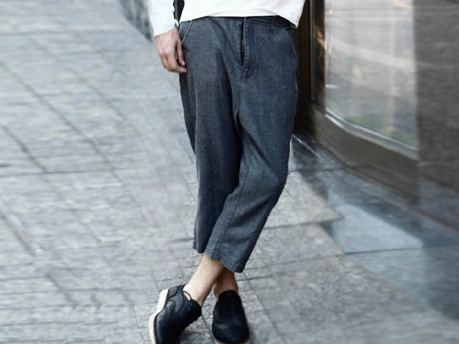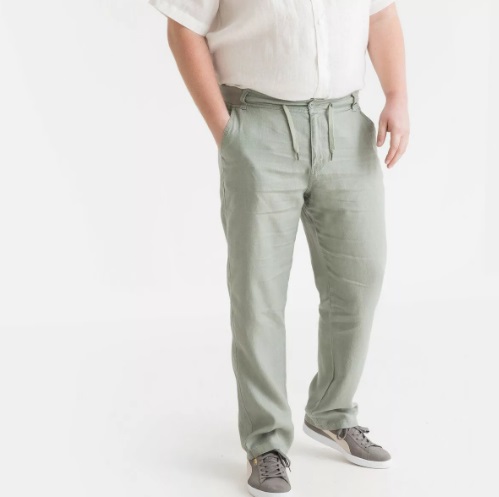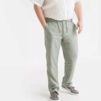 Calças de linho são um ótimo complemento para um guarda-roupa de verão em um estilo informal e livre. Tênis branco e polo com listras brancas e azuis, jumpers brilhantes serão apropriados aqui. Em climas mais frios, vista um terno de linho ou um cardigã cinza folgado.