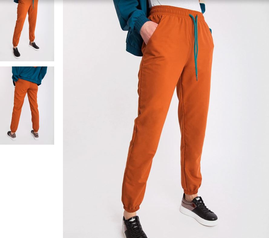 Calças de verão maciças, de corte livre e direito, com cintura alta. Eles são combinados com sapatos de verão ou sandálias, camisas sociais com mangas curtas. As calças proporcionam um corte bastante conservador e requerem um acréscimo adequado ao guarda-roupa.